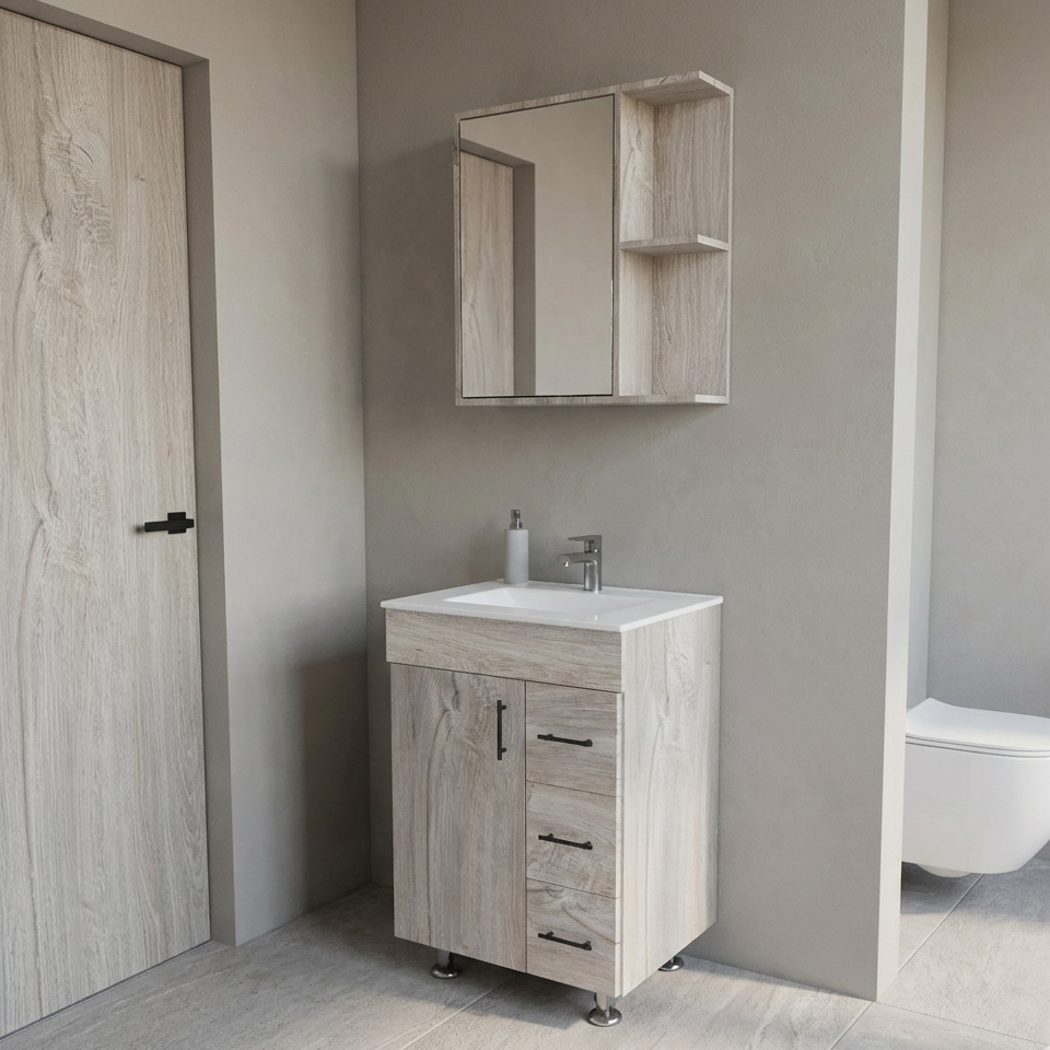 COMBO / MUEBLE DE BAÑO Y ESPEJO / COLOR SANTORINI